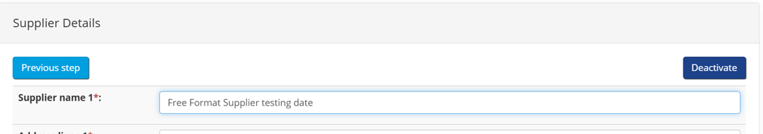 - Deactivate the Supplier: On the supplier details page, the option to deactivate the supplier is in the top right of the page.